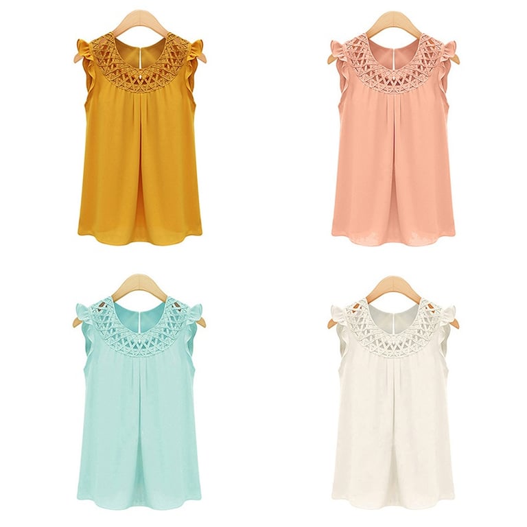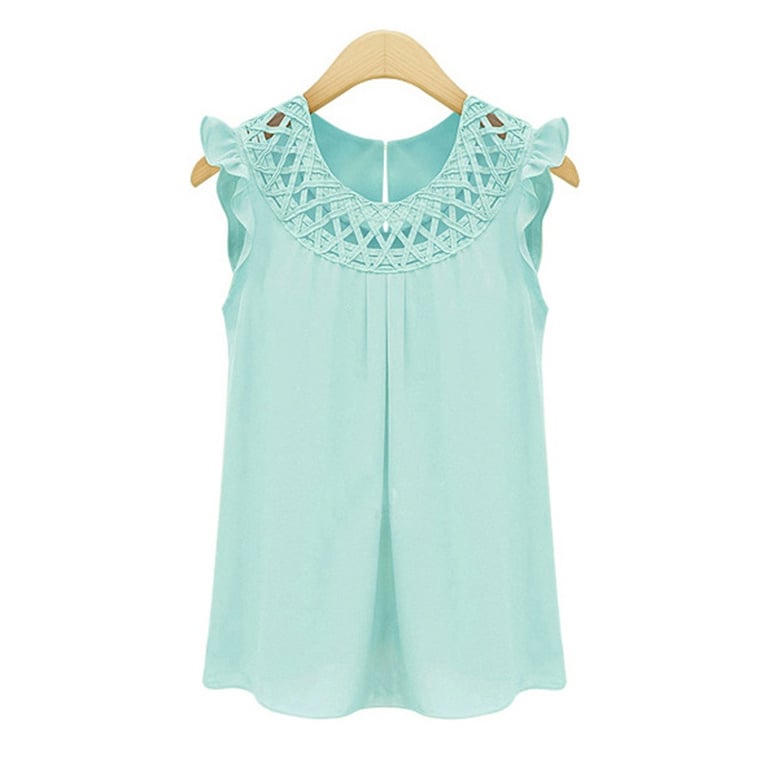 Top feminino com decote adornado, que lhe confere um aspeto elegante. É sem mangas e tem babados. Ideal para o período de verão.