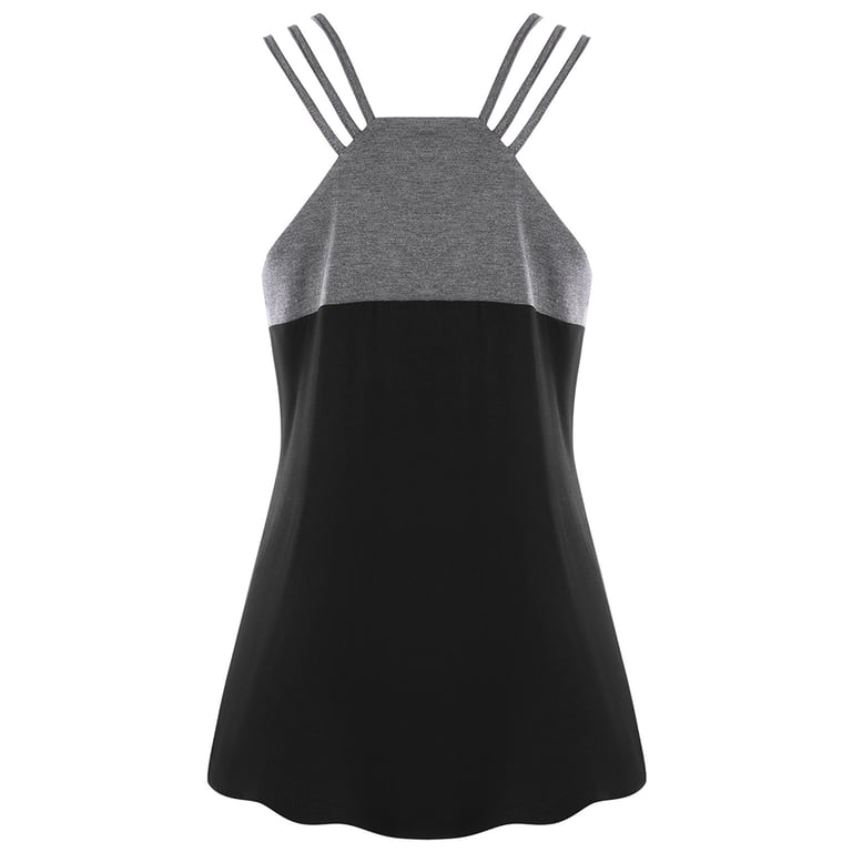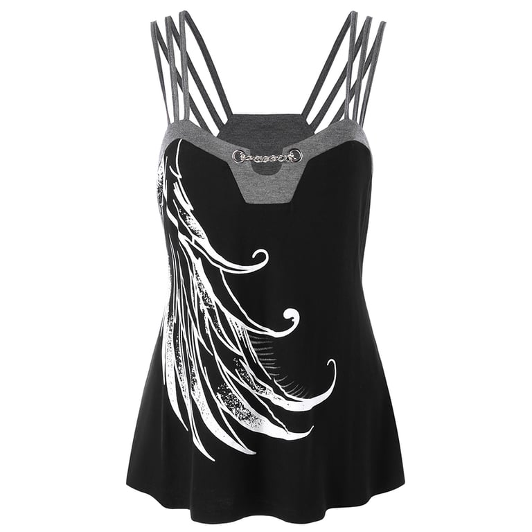 Top de verão feminino com estampado e alças finas. Cor cinza e preta.