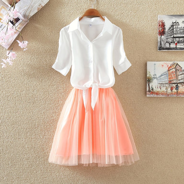 Vestido de verão Elaisa com camisa – branco e rosa – conjunto de 2 peças