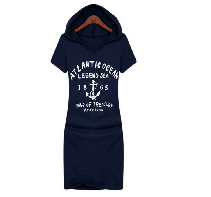 Vestido de verão feminino com capuz azul escuro
