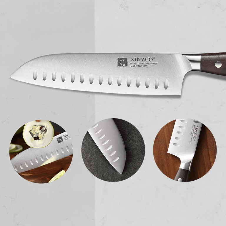 XINZUO - Conjunto de facas de cozinha em aço alemão – conjunto de 7 peças com suporte de madeira para facas