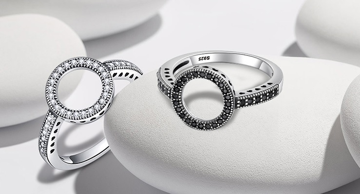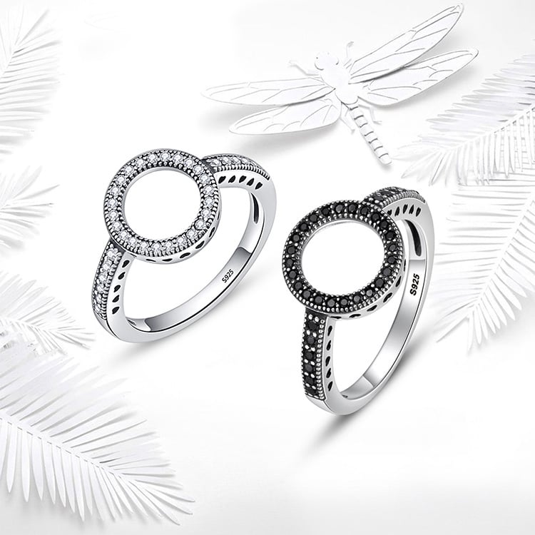 O elegante anel prateado é um presente adequado para qualquer mulher.