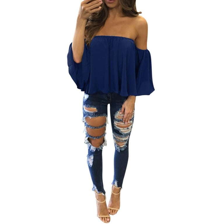 Blusa feminina com ombros à mostra, ideal para o verão ou para festas, clubes, etc.