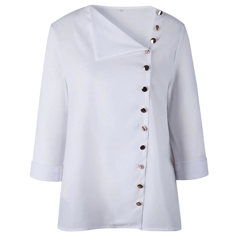 Blusa feminina com decote assimétrico. Tem mangas 3/4 e um corte elegante.