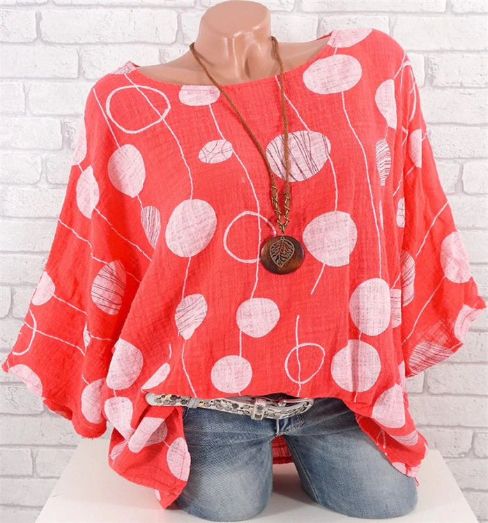 Blusa leve feminina ideal para o verão. Cores bonitas, decorada com grandes bolinhas.