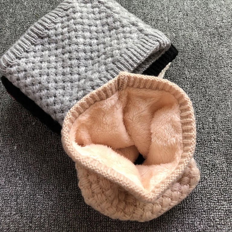 O cachecol é tricotado de um lado e felpudo do outro.