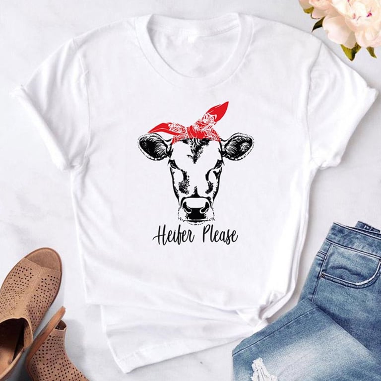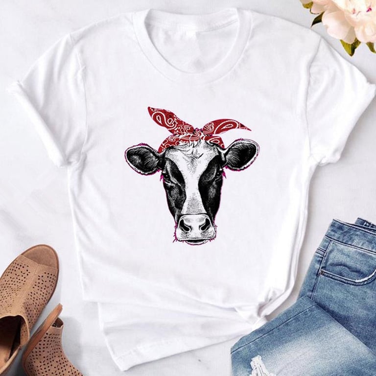 T-shirt branca feminina com estampado de vaca
