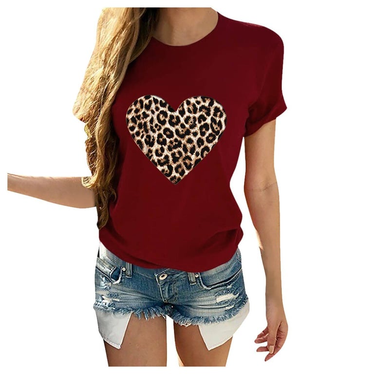 Camiseta feminina com coração de leopardo