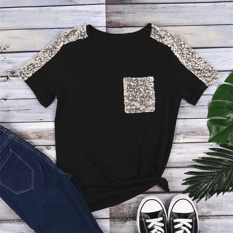 T-shirt feminina com lantejoulas pretas