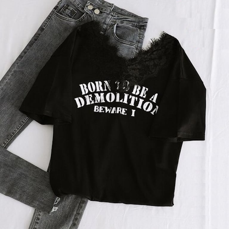 Camiseta de renda feminina com estampado