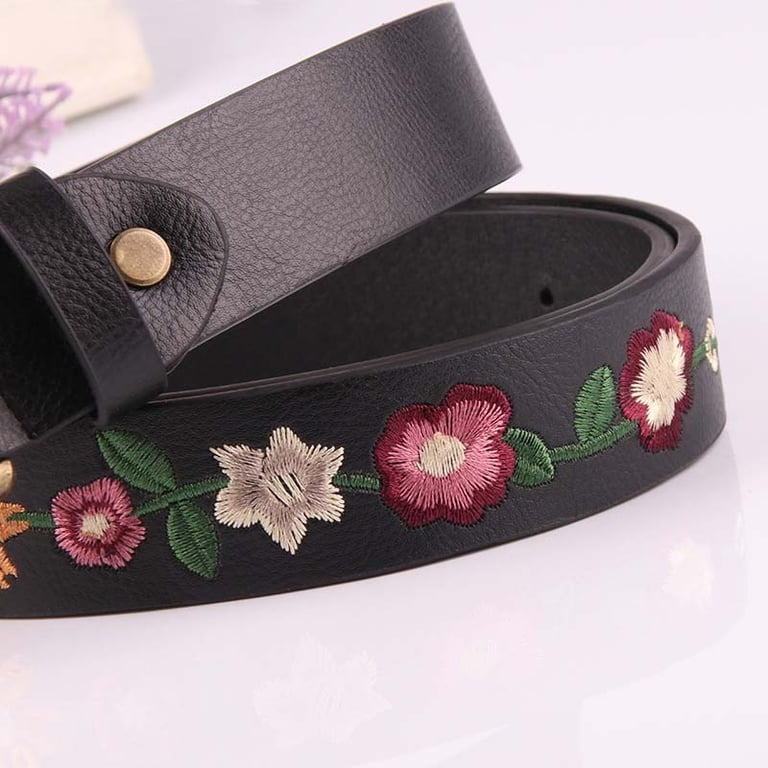 Cinto de couro feminino com flores