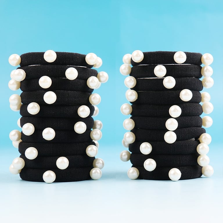 Belas gomas de cabelo com pequenas pérolas vão ficar bem em qualquer mulher.