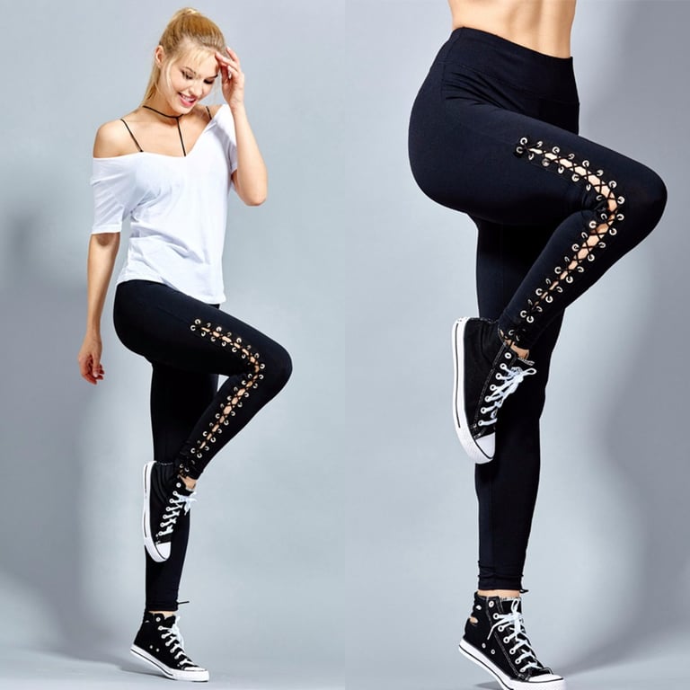 Leggings femininos com cordões