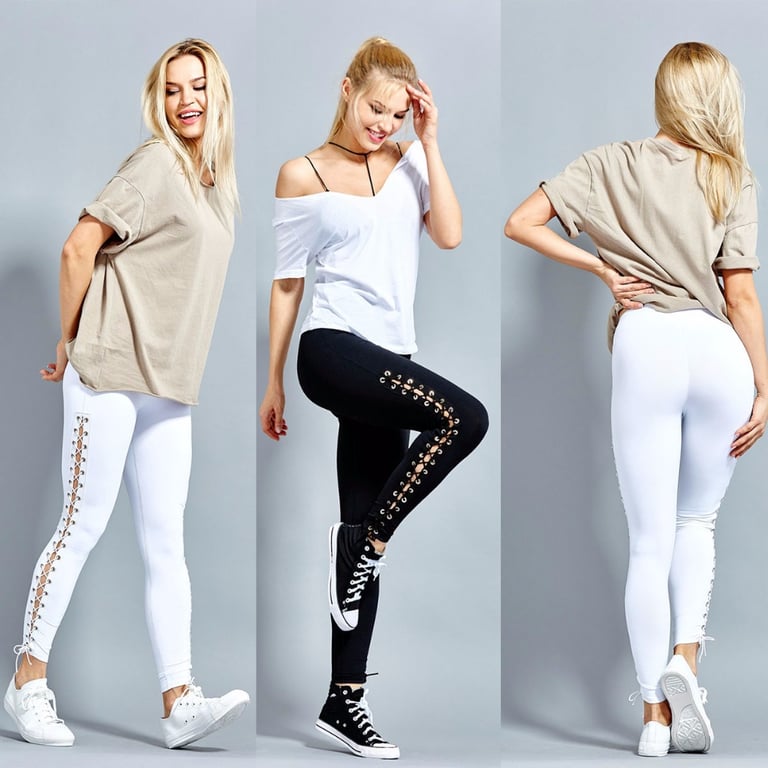 Leggings femininas estilosas com cordão nas laterais. Disponíveis em duas cores.