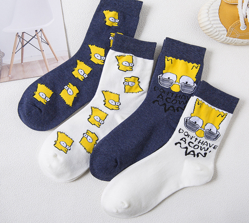 Meias de algodão engraçadas com estampado dos Simpsons.