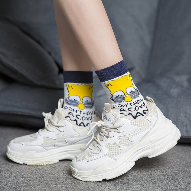 Meias de algodão engraçadas com estampado dos Simpsons