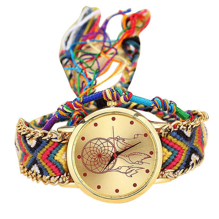 Relógio de malha feminino com apanhador de sonhos.