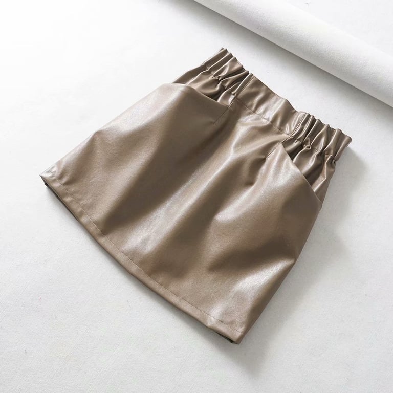 Saia mini de couro feminina com bolsos