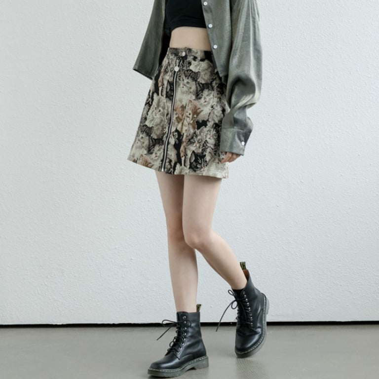 Saia mini feminina com estampado de gatos