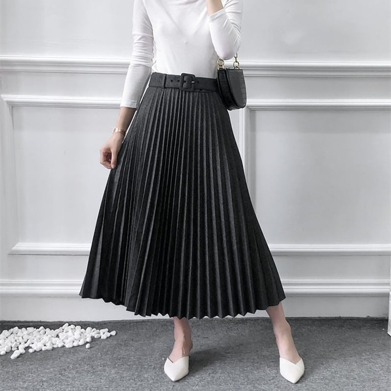 Saia plissada feminina com cinto