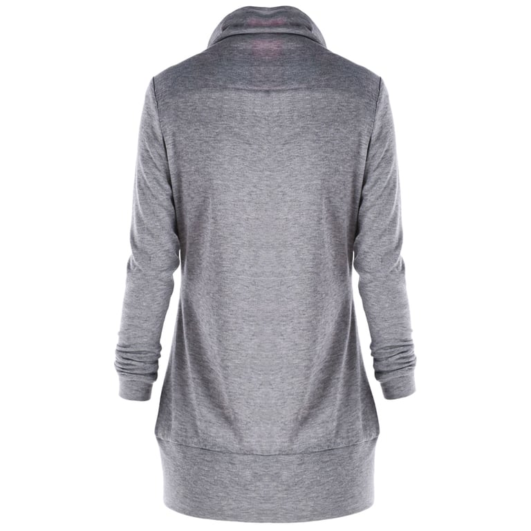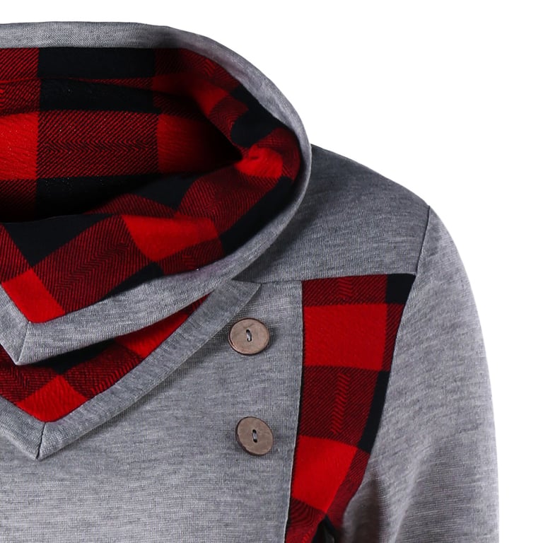 Sweatshirt feminina cinza com decoração xadrez. É adornada com botões e tem um colarinho alto. Ideal para a primavera.