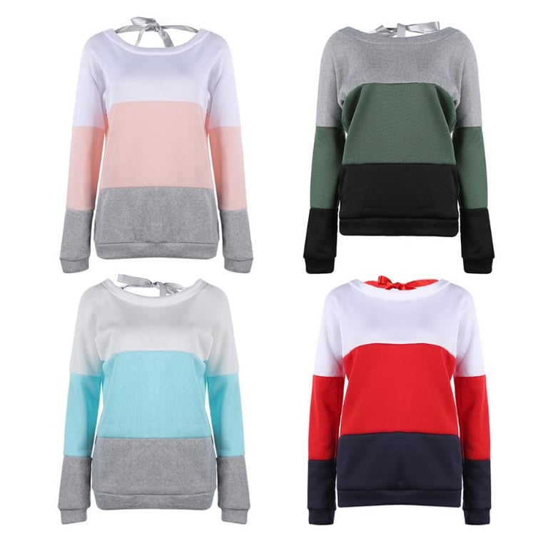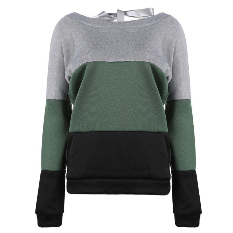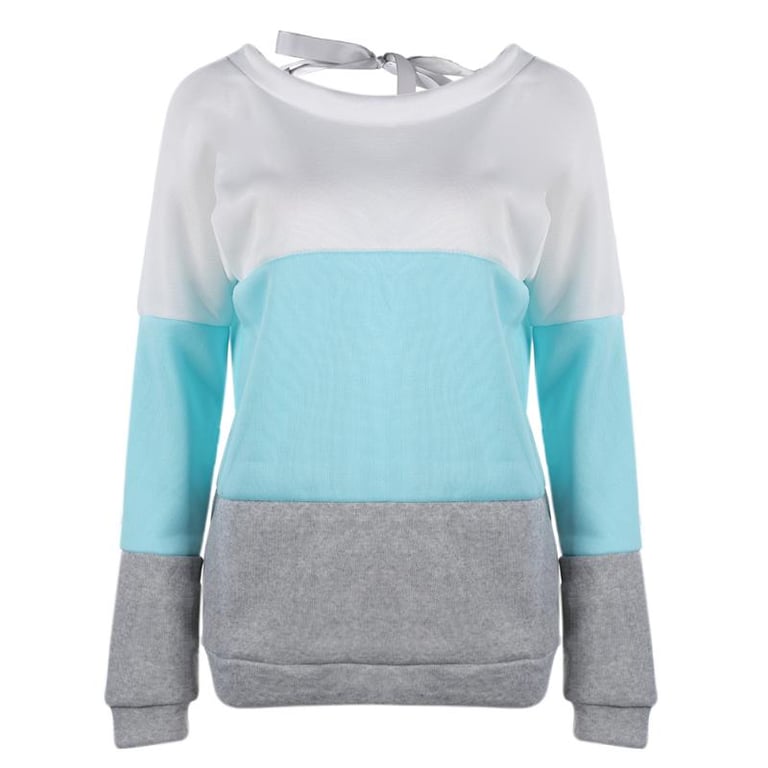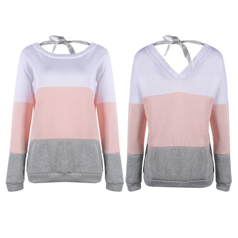 Sweatshirt feminina elegante com laço nas costas. Tem decote redondo e costas recortadas. Ótima para a primavera e outono.