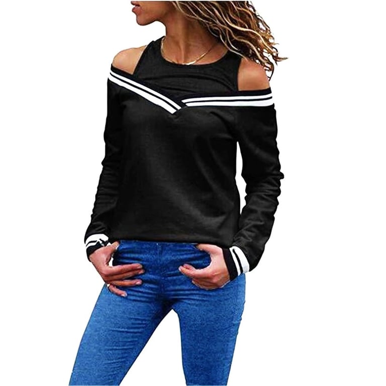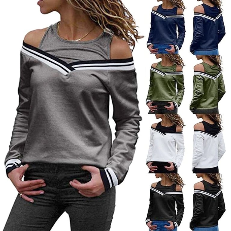 Sweatshirt casual com decote em V largo e ombros à mostra. É finalizada com malha riscada e tem um top embutido.
