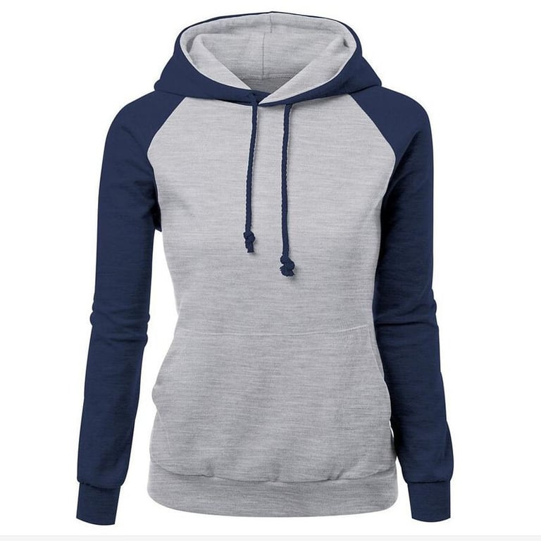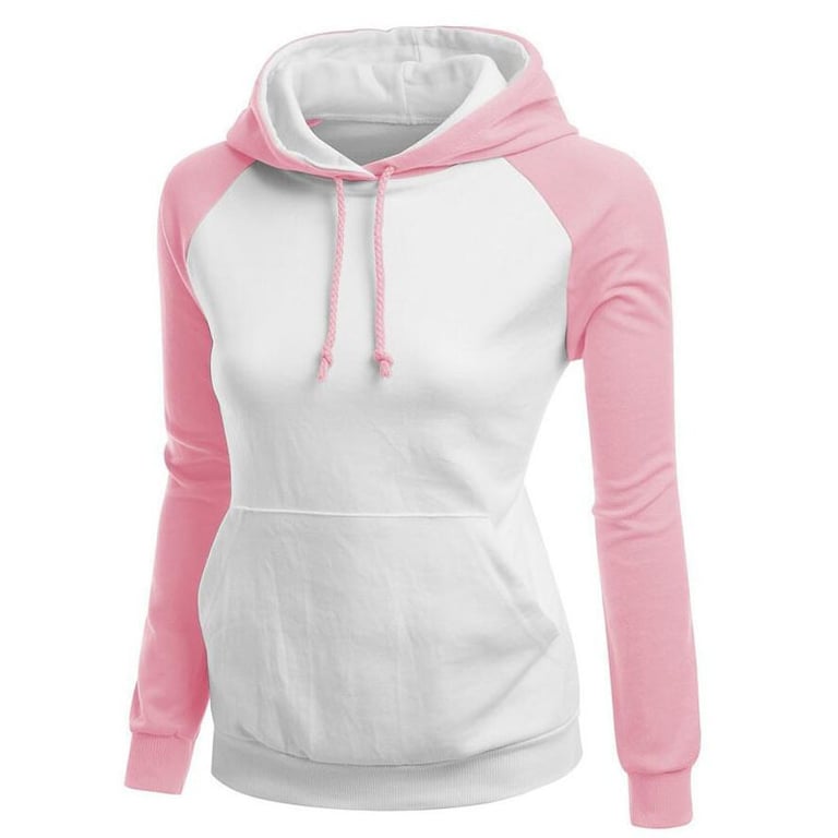 Sweatshirt feminina que é de duas cores, tem capuz e um grande bolso canguru. É adequada para o tempo livre ou para desporto.