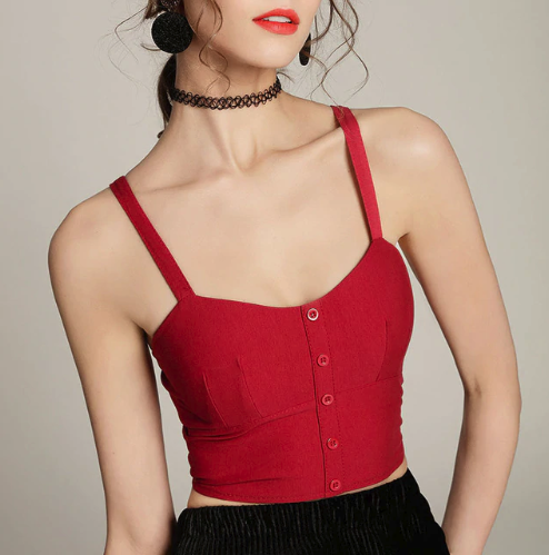 Este top crop corselet com botões está disponível em várias versões: lisa, riscada. Ideal para dias quentes de verão.