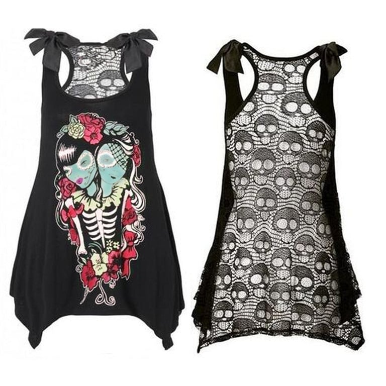 Top feminino com caveiras